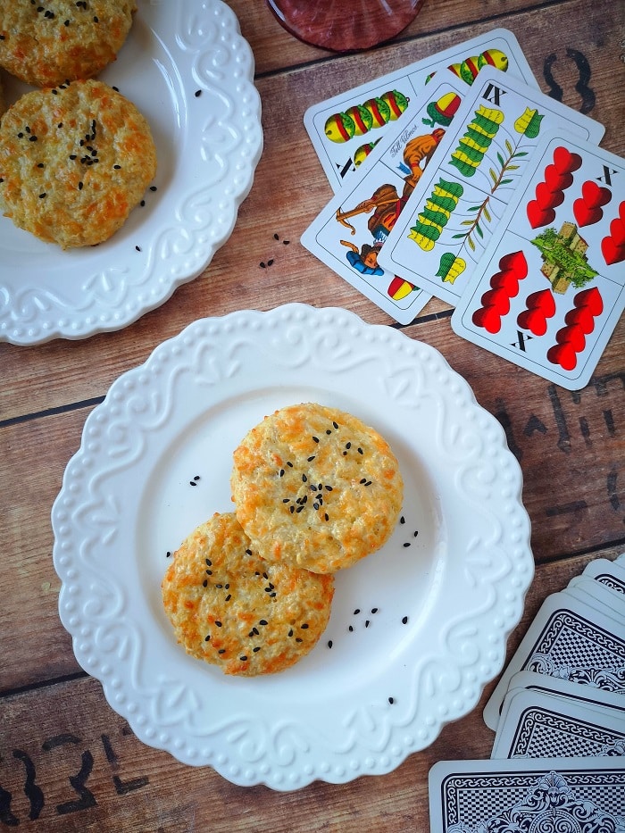 A masszából evőkanálnyi adagokból golyót formálok, sütőpapíros tepsire sorakoztatom. A tetejüket megszórom valamilyen maggal.