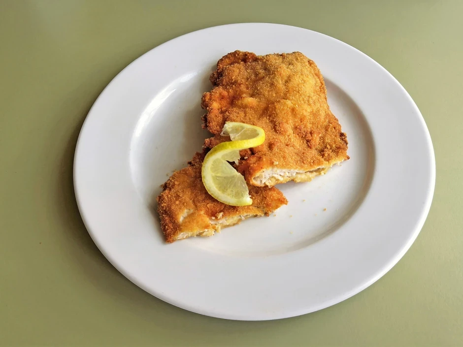 A másik meg a Münchener Schnitzel nevű étel, ami tulajdonképpen egy mustáros-tormás rántott hús.